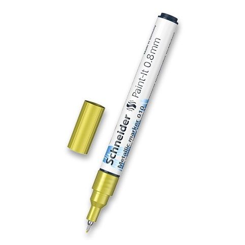 Kreativní popisovač Schneider Paint-It 010 v metalických barvách a jeho inovativní technologie umožňuje čisté a rovnoměrné nanášení barvy. Použití hliníkových vloček potažených barevnými pigmenty zajišťuje vysoce kvalitní metalický efekt. Vhodný pro použití na celou řadu povrchů – ideální na tmavé, nesavé povrchy. Šíře stopy 0,8 mm.
