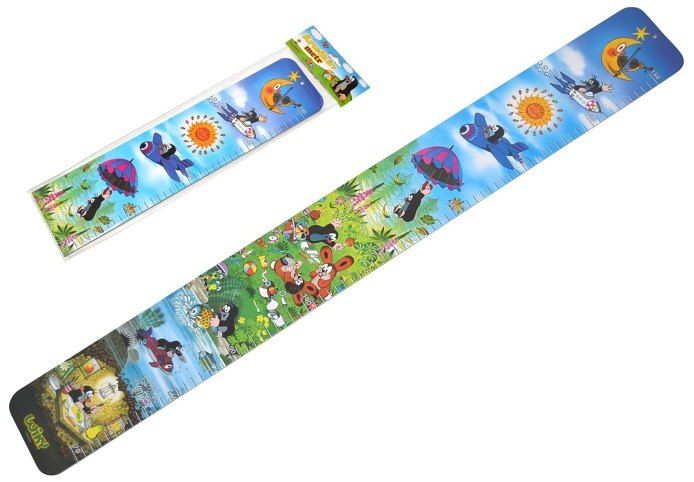 Tak o kolik vám dítko povyrostlo? Zeptáme se Krtečka. Dětský nástěnný metr s Krtečkem a jeho kamarády vám ukáže, o kolik vaše děti vyrostly a zároveň se stane pěknou dekorací do dětského pokojíku. Rozsah stupnice: 70 - 150 cm. Velikost: 890 x 105 x 3 mm.
