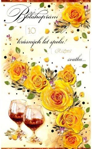 Přání otočné k výročí svatby, velké, text uvnitř. (10-růžová, 15-křišťálová, 20-porcelánová, 25-stříbrná, 30-perlová, 40-rubínová, 50-zlatá, 60-diamantová)