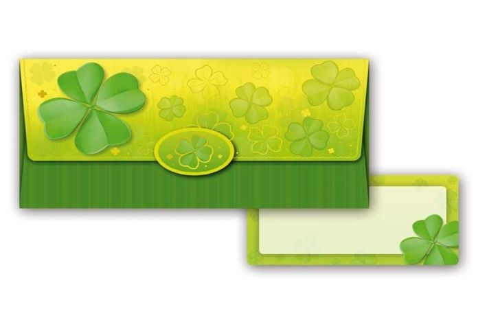 Dárková obálka na peníze s celoročním motivem - Udělejte oslavenci radost a věnujte mu obálku s penězi nebo dárkovým poukazem. Uvnitř je kartička bez textu, na kterou můžete napsat věnování. PROVEDENÍ: zelená se čtyřlístky Uvedená cena je za 1 ks.