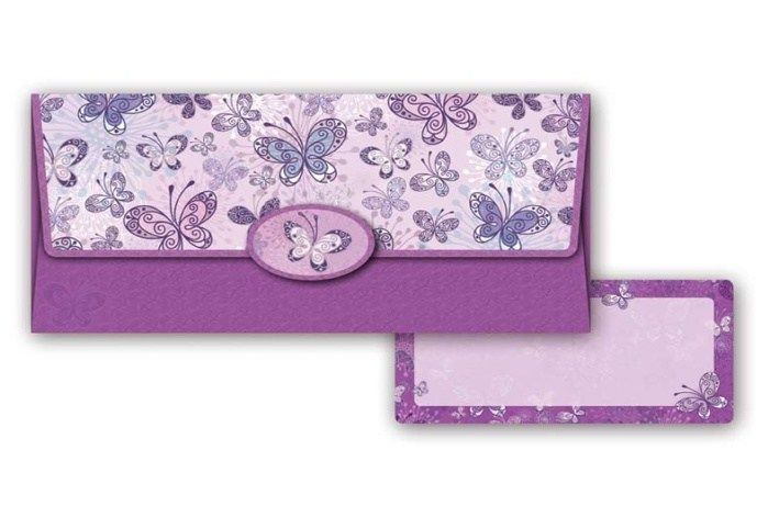 Dárková obálka na peníze s celoročním motivem - Udělejte oslavenci radost a věnujte mu obálku s penězi nebo dárkovým poukazem. Uvnitř je kartička bez textu, na kterou můžete napsat věnování. PROVEDENÍ: fialová s motýly Uvedená cena je za 1 ks.