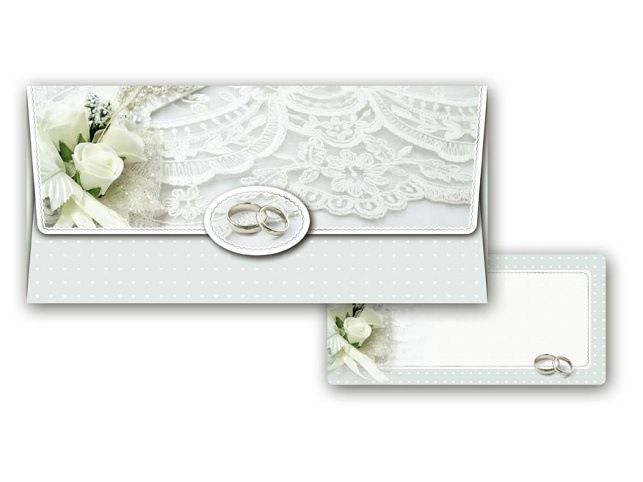 Dárková obálka na peníze - pro novomanžele - Udělejte novomanželům radost a věnujte jim obálku s penězi nebo dárkovým poukazem. Uvnitř je kartička bez textu, na kterou můžete napsat věnování. PROVEDENÍ: bílá s prsteny Uvedená cena je za 1 ks.