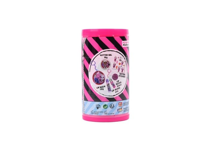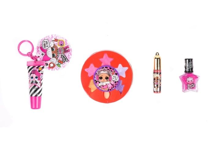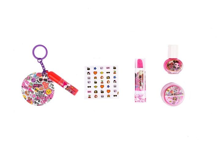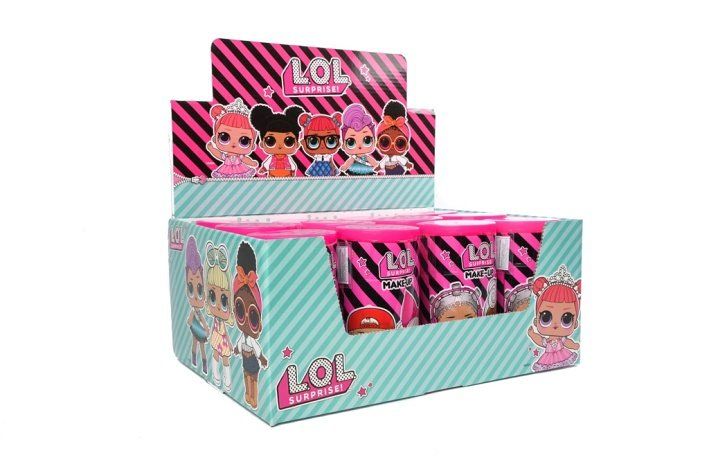 Make up LOL s překvapení ve tubě obsahuje různé druhy make up – balzám na rty s různým příchutěmi, lak na nehty, oční stíny, samolepky atp.