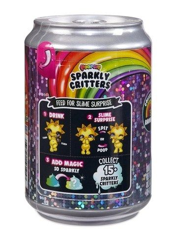 Objev, jaká Třpytivá potvůrka se schovává v tvojí plechovce. Potvůrce dej napít, pořádně s ní zatřes, stlač tváře potvůrky a zjisti, kudy vyjde kouzelný sliz ven. Plive nebo kaká? Třpytivá potvůrka dělá oboje! Sbírej duhu!