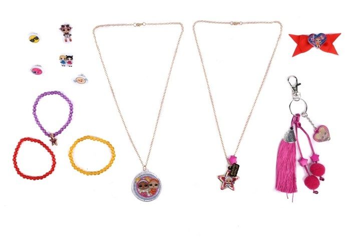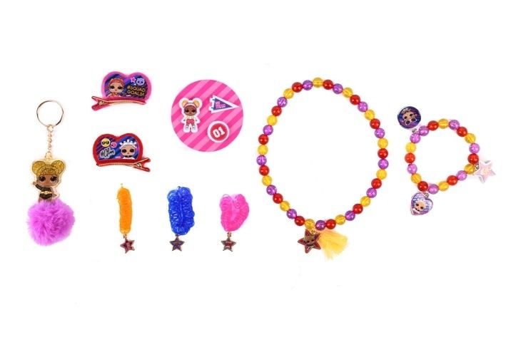 Šperky a příslušenství do vlasů LOL překvapení v tubě obsahuje různé druhy šperků a příslušenství do vlasů – gumičky s přívěsky, mašle, náhrdelníky, náramky atp. 6 různých tipů.