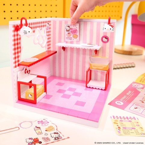 Mini hračky…VELKÁ překvapení! Udělej to! Vystav to! Postav si svůj vlastní kouzelný koutek s Make It Mini Hello Kitty setem! Sestav dlaždice, postav stěny, přidej panely a vytvoř mini svět plný roztomilosti! V balení najdeš doplňky a exkluzivní předměty, které nenajdeš nikde jinde. Sestavuj, přestavuj a objevuj nové možnosti, jak si hrát. Ideální pro vystavení Hello Kitty miniatur. Možno kombinovat s MGA's Miniverse – Make it Mini Místnostmi. Obsah balení: • 2 stěny • 1 podlaha • Nástroje a doplňky pro sestavení pokojíčku