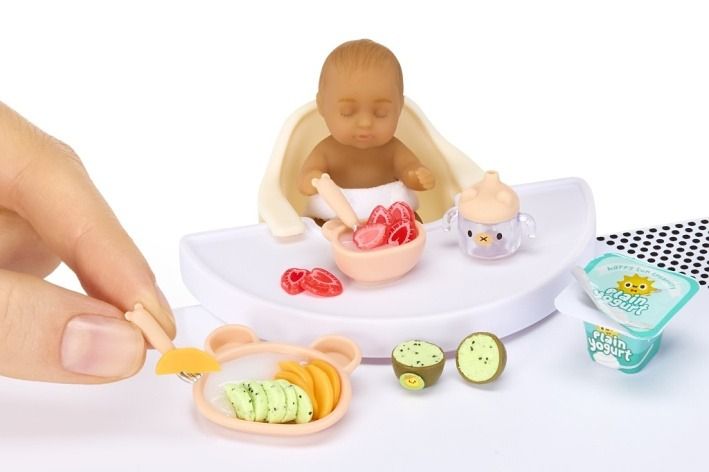 Mini hračky…VELKÁ překvapení! Udělej to! Vystav to! • Rozbal repliky a sbírej miminka, která můžeš nakrmit. • Každé balení obsahuje mini realistické miminko a jedinečné ingredience k vytvoření různých dětských pokrmů. • V této sérii můžeš nasbírat 4 unikátní miminka a 8 receptů. • 1 set na výrobu jídla • 1 mini miminko