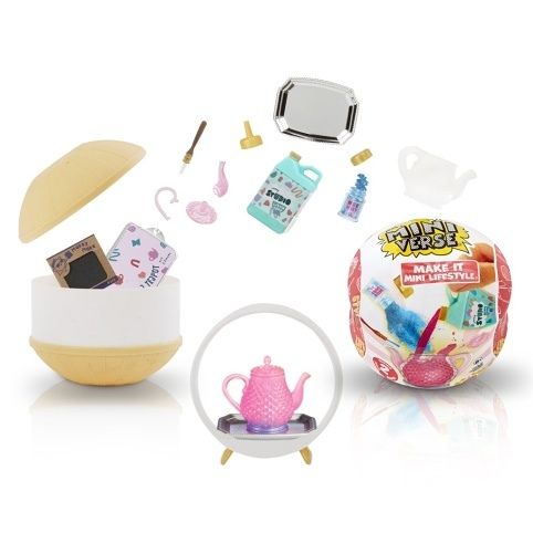 Mini hračky…VELKÁ překvapení! Udělej to! Nadesignuj to! Rozbal nové, rozkošné dekorace ve formě mini replik. Jsou tak miniaturní, ale i přesto s neuvěřitelně realistickými a funkčními detaily! Dekoraci vyrobíš z ingrediencí ve tvém balíčku, pak ji necháš alespoň 5 minut na přímém slunci vytvrdnout nebo použiješ UV lampičku a můžeš designovat čajové sety, svíčky a vázy. Obsah balení: • 1 hmota nebo 1 – 2 lahvičky pryskyřice • 1 obal ve tvaru koule • nástroje na výrobu miniatury V této sérii je možné sesbírat 15 setů.