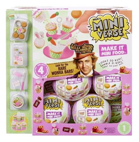 Mini hračky…VELKÁ překvapení! Udělej to! Naservíruj to! Nyní připravíš nápoj nebo jídlo v jarním duchu. Rozbal své oblíbené jídlo ve formě mini replik. Je tak miniaturní, ale i přesto s neuvěřitelně realistickými detaily! Jídlo nebo nápoj připravíš z ingrediencí ve tvém balíčku, pak ho necháš alespoň 5 minut na přímém slunci nebo pod UV lampičkou vytvrdnout a můžeš servírovat! Můžeš si připravit mrkvové muffiny, velikonoční košík, pečenou šunku nebo vzácnou čokoládu z filmu Karlík a továrna na čokoládu. Obsah balení: • 1 set na výrobu jídla nebo nápoje • 1 – 2 lahvičky s pryskyřicí • 1 stolek V této sérii je možné sesbírat 4 sety, z nichž jsou čokolády Wonka vzácné.