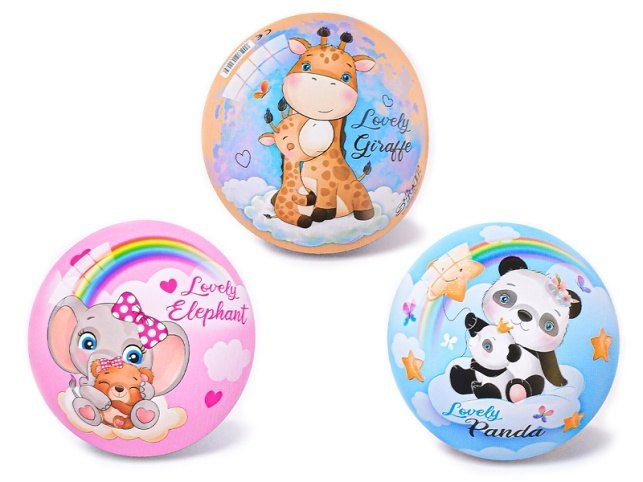 Míč je velmi oblíbenou hračkou všech dětí. Děti si s míčem rády kutálejí, házejí nebo kopají. S míčem lze také trénovat různé styly chytání a házení. Vhodný je pro hru doma i na zahradě. Míč se zvířátky má průměr 14 cm. Dostupné jsou 3 druhy - žirafa, slon, panda. Vhodný pro děti od 10 měsíců.
