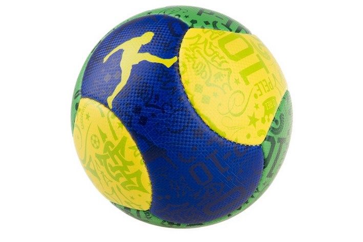 Šitý míč na kopanou Beach s modro-žluto-zeleným potiskem pro všechny malé fotbalisty.