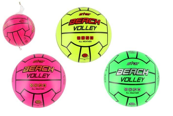 Míč volejbalový plážový 23cm 3 barvy v síťce