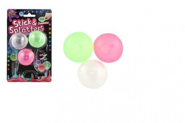 Míček 3ks svítící ve tmě 4cm lepící antistresový