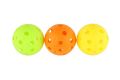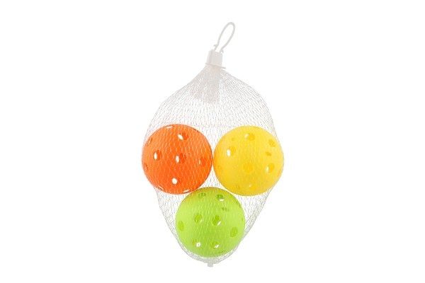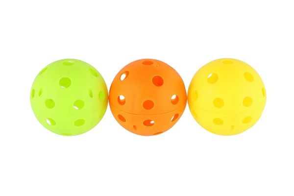 Sada florbalových míčků tří barev, které se budou hodit nejen na každý florbalový zápas ale také na další míčové sporty.