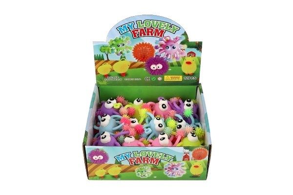 Míček mačkací chlupatý antistresový svítící silikon 6cm na baterie 4 barvy
