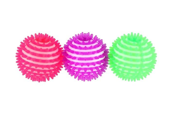 Míčky jsou skvělou pomůckou při rehabilitaci a nebo masáži pro uvolění namožených či zablokovaných svalů a také může fungovat jako antistresový. Díky masáži míčkem s bodlinkami se snáze snáze zbavíte nadměrného pnutí chodidel, šíje a nebo bolavých svalů. Míček je gumový, se světlem.