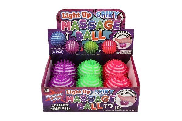 Míčky jsou skvělou pomůckou při rehabilitaci a nebo masáži pro uvolění namožených či zablokovaných svalů a také může fungovat jako antistresový. Díky masáži míčkem s bodlinkami se snáze snáze zbavíte nadměrného pnutí chodidel, šíje a nebo bolavých svalů. Míček je gumový, se světlem.