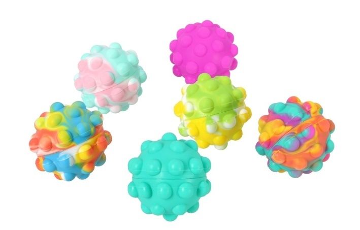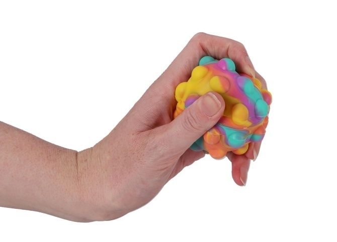 Míček Pop-Trix. Stlač míček nebo bublinu a čekej na zvuk puknutí. Může sloužit i jako antistresová pomůcka. Více druhů a barev.