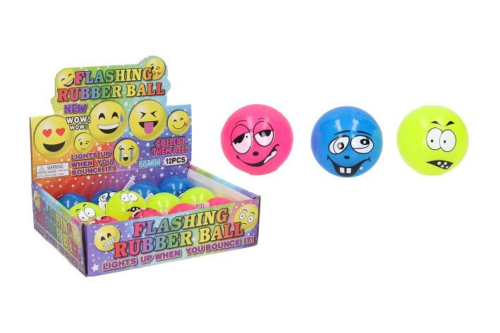 Míček s obličejem. Velikost 5,5 cm. Světelné efekty, baterie nelze měnit. 12 ks display box. 3 varianty - růžová, žlutá, modrá.