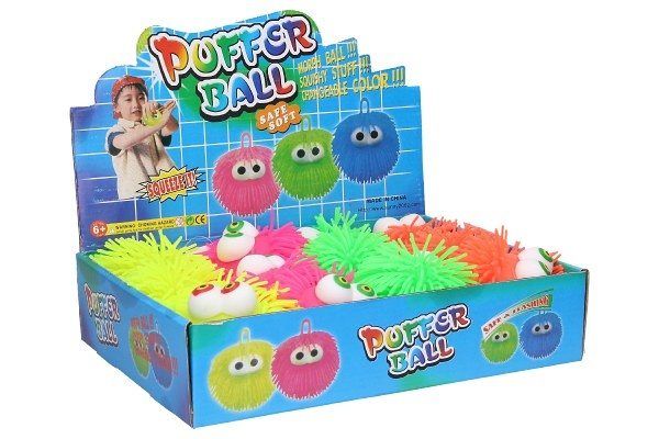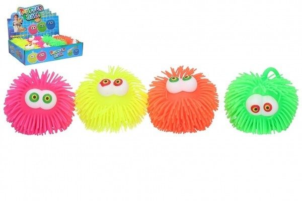 Míček silikon chlupatý antistresový 9cm se světlem na baterie 4 barvy