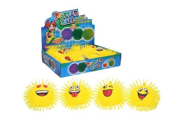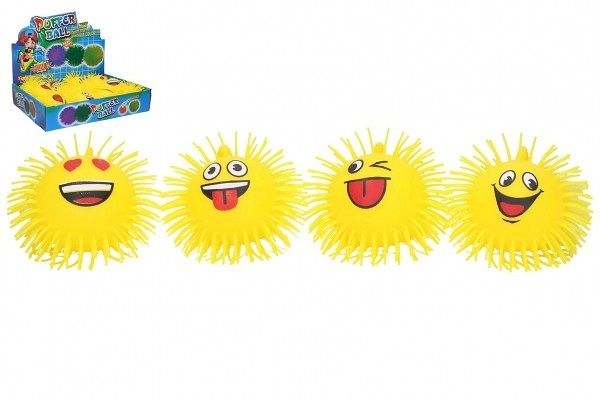 Míček smajlík mačkací chlupatý antistresový svítící silikon 10cm 4 druhy