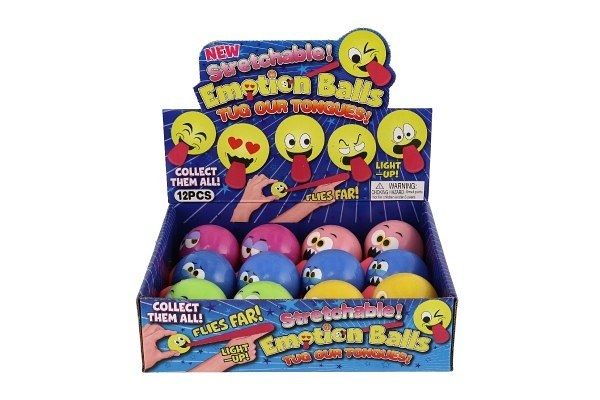 Míček smajlík s jazykem gumový 5cm na baterie se světlem 5 barev