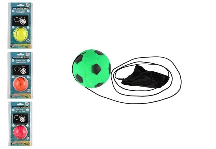 Vracející se míček je ideální hračkou pro zabavení. Míček je přivázaný na tkaničce, díky které vám míček nikdy neuteče. Můžete si s ním házet o zeď nebo o zem. Balonek ve čtyřech různých vzhledech podle druhu sportu, baleno v blistru.