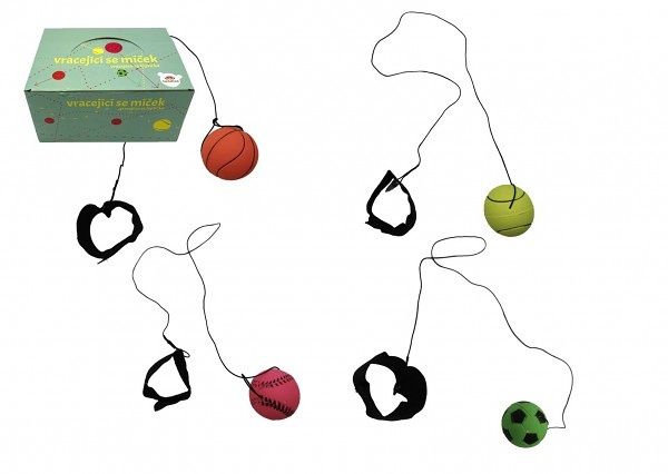 Vracející se míček je ideální hračkou pro zabavení. Míček je přivázaný na tkaničce, díky které vám míček nikdy neuletí. Můžete si s ním házet o zeď nebo o zem. Balonek ve čtyřech různých vzhledech podle druhu sportu, baleno v sáčku.