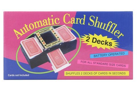 Plastová míchačka karet. Napájení na 4 AA baterie (nejsou součástí). Karty nejsou součástí balení. Rozměry cca 20 x 9,5 x 9,5 cm. Rozměry balení cca 21 x 11,5 x 11 cm. Věk 3+