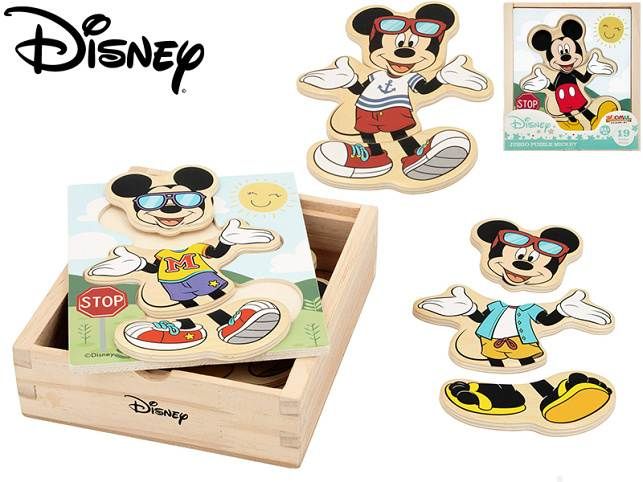 Mickey Mouse vkládačka dřevěná "Obleč Mickeyho" 24m+19ks v dřevěné krabičce ve fólii
