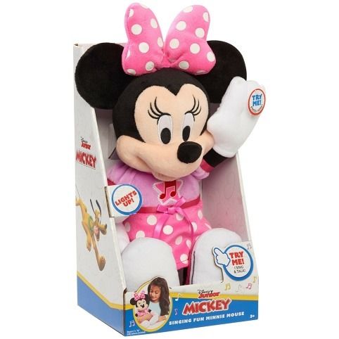 Zábavný plyšák Minnie Mouse umožní dětem zpívat spolu s myškou Minnie celé hodiny! Stiskněte Minnie Mouse ruku a zazpívejte si s ní píseň z Minnie's Bow-Toons! Minnie Mouse je vysoká 30 cm, má na sobě rozkošný růžový outfit! Tento plyšový zábavný kamarád je vyroben z měkkých materiálů a je ideální pro každého fanouška myšky Minnie. Malí fanoušci budou rádi, když si s sebou plyšový plyšák Minnie Mouse vezmou, ať jdou kamkoli! Vyžaduje 2 x AA baterie (součástí balení). Věk 3+ Na baterie: 2x AA (jsou součástí balení)