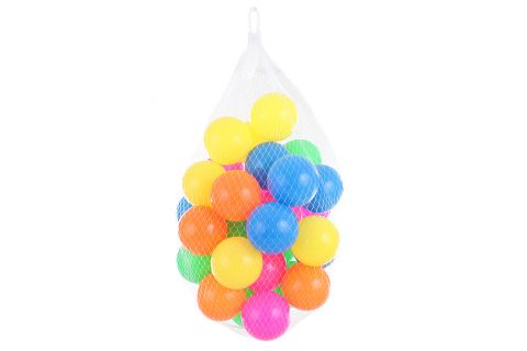 Barevné plastové míčky o rozměru cca 6 cm balené v síťce - 30 ks. Rozměr balení cca 33 x 26 x 16 cm. Věk 3+