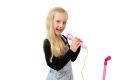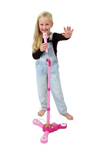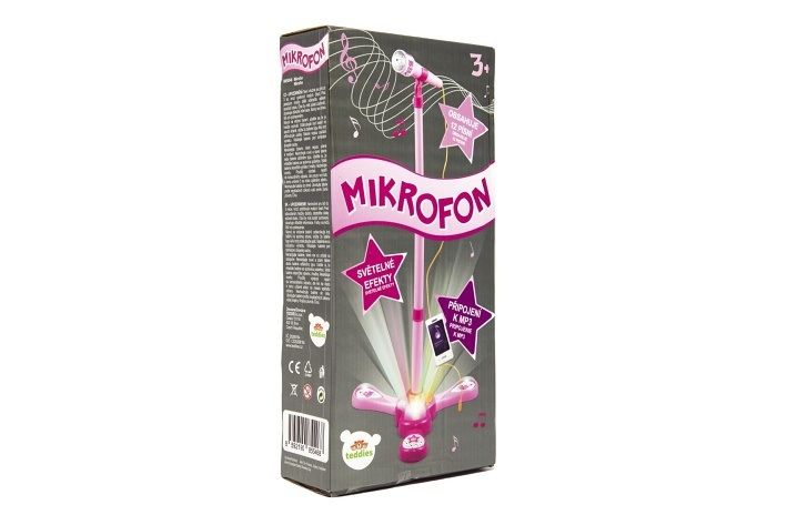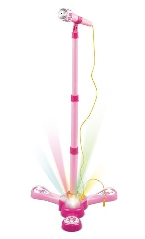 Růžový mikrofon musí být součástí každé karaoke party. S okouzlujícími barevnými světelnými efekty si budete připadat jako hvězda na koncertě. Mikrofon obsahuje 12 písní. Připojte MP3 nebo mobilní telefon a pouštějte do mikrofonu vlastní hudbu.