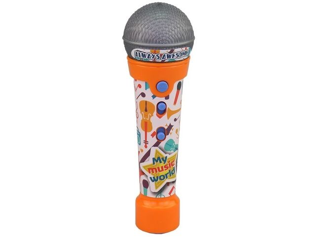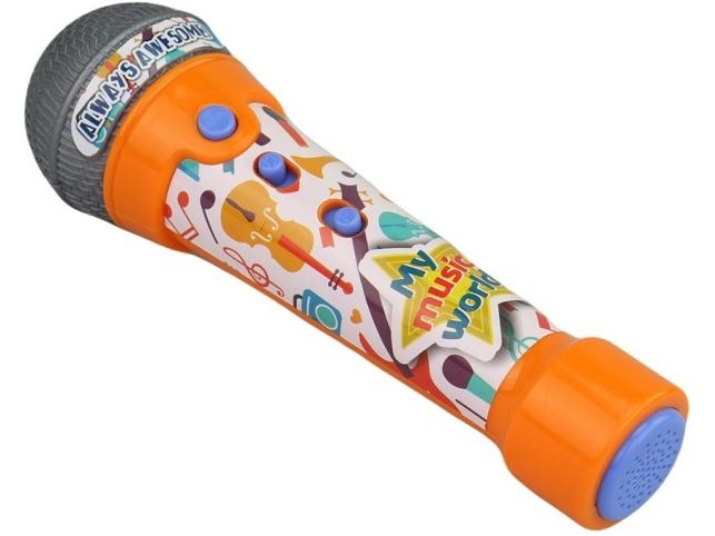 Mikrofon na baterie, 20 x 6 x 6 cm. Skvělá zábava pro malé zpěváky je mikrofon na baterie, ke kterému je možné připojit externí zařízení. Staň se hvězdou pódií. Připoj k mikrofonu přes jack připojení chytrý mobilní telefon nebo MP3 zařízení a zpívej společně se svým oblíbeným zpěvákem nebo zpěvačkou známé písničky. Rozměr hračky: 20 x 6 x 6 cmNapájení mikrofonu: 3 x AA 1,5 V baterie (nejsou součástí balení). Vhodné pro děti od 3 let. Materiál: plast