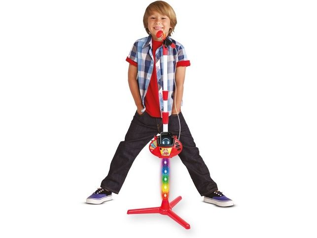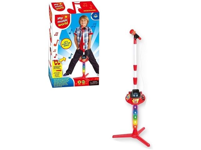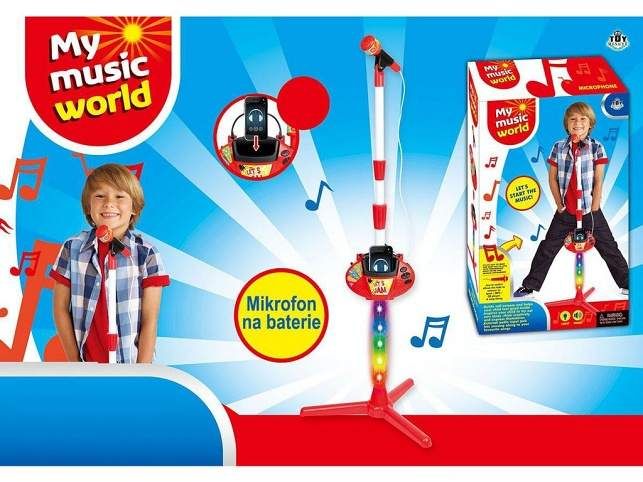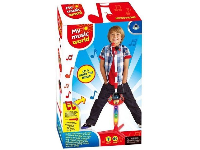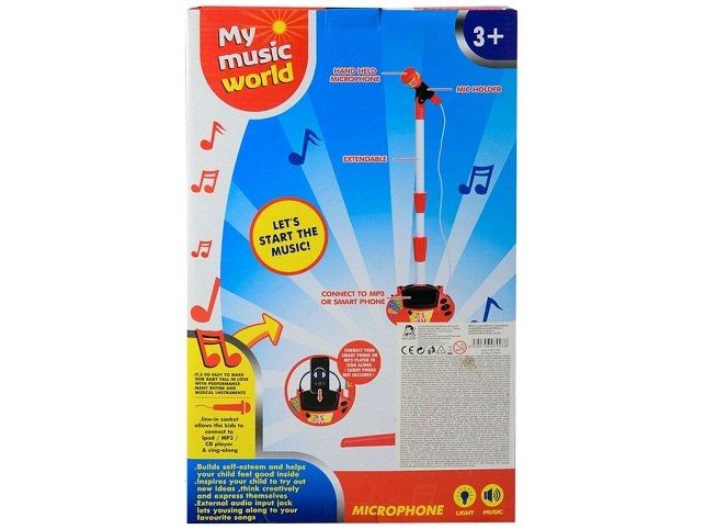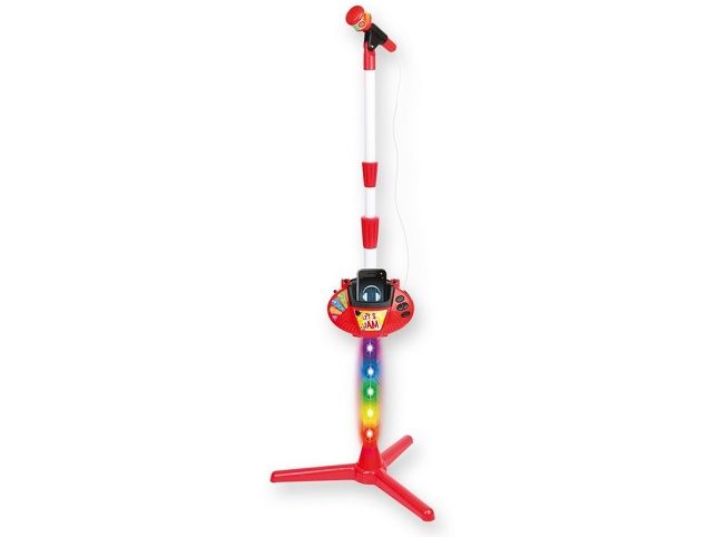 Skvělá zábava pro malé zpěváky je mikrofon na baterie, ke kterému je možné připojit externí audiozařízení. Pro ještě větší zábavu je spodní část stojanu vybavena blikajícími barevnými světly. Staň se hvězdou pódií. Připoj k řídící jednotce stojanu MP3 přehrávač nebo chytrý mobilní telefon a zpívej společně se svým oblíbeným zpěvákem nebo zpěvačkou známé písničky. Napájení: baterie 3x AA 1,5 V. Vhodné pro děti od 3 let. Materiál: plast