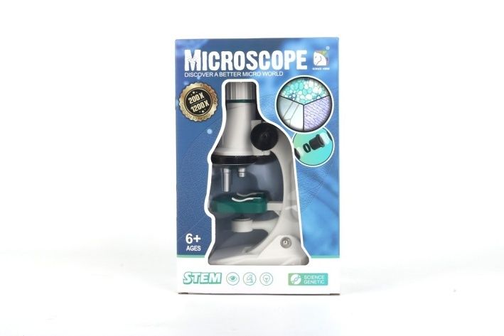 Mikroskop s odlišnými zvětšeními – 1200×, 600× 200×. Regulace velikosti, regulace jasnosti, regulace zvětšení, držák, pomocné světlo. Podpořte dětské schopnosti pozorovat a objevovat svět mikrobiologie. Mikroskop je přístroj s čočkami, který nám velmi malé předměty zvětšuje. Protože na světě existuje nespočet živých věcí, které není možné pozorovat pouhým okem, umožňuje nám mikroskop vidět tyto neviditelné věci bez námahy. Na baterie: 2x AA (nejsou součástí balení)