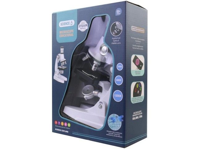 S výškou 22 cm, šířkou 9,5 cm a hloubkou 30 cm poskytuje dostatek prostoru pro zkoumání. Mikroskop je vyroben z kvalitního plastu a dodává se v praktickém obalu s okénkem. K mikroskopu jsou potřeba 2 baterie typu AA, které nejsou součástí balení. Ideální pro malé badatele, kteří chtějí objevovat tajemství mikroskopického světa.