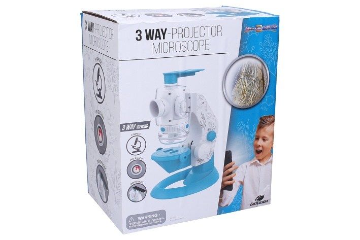 Mikroskop se spodním osvětlením usnadní první kroky všem mladým vědcům a vědkyním. Tři různé objektivy pro pozorování průhledných objektů umožňují zvolit požadované zvětšení pro pozorování mikrosvěta a zahájení badatelské práce. Mikroskop s projektorem. 3 možnosti pozorování (kukátko, projekce, propojením se smartphonem).