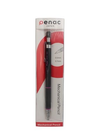 Mikrotužka Penac Protti s kovovou objímkou pro presné linky pri rýsování, šrafování, skicování, psaní i kreslení je opatrena unikátním mechanismem. Jakmile potrebujete tuhu posunout, stací zatlacit na hrot mikrotužky a tuha se sama posune. Mechanismus umožnuje jednoduše posouvat tuhu dál do hrotu a zároven udrží i velmi krátké tuhy, címž umožnuje využít tuhu na maximum. Jedním pritlacením hrotu k podložce uvolníte tuhu o délce 1 mm, která zajistí 5 m psaní. Kovový hrot je plne zasouvací a tím je chránen proti možnému poškození. Na stiskací strane mikrotužky naleznete indikátor tvrdosti vložené tuhy - otocením vroubkovaného krytu pryže do príslušné polohy si mužete zvolit, jakou tvrdost aktuálne v mikrotužce používáte (B, HB, F, H, 2H, 3H). Protiskluzový úchop ve forme vroubkování, kovový klip, pryž bez silikonu a PVC. Dodáváno v papírové krabicce. Šíre: 0,5 mm. Vyrobeno v Japonsku.