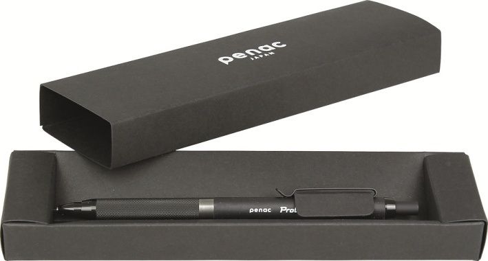 Dárková mikrotužka Penac Protti s kovovou objímkou pro presné linky pri rýsování, šrafování, skicování, psaní i kreslení. Elegantní štíhlé kovové telo v matné cerné barve, jehož jednoduchý design doplnují decentní kovové prvky a lesklý stríbrite šedý proužek. Unikátní mekký mechanismus zabranuje zlomení tuhy a zajištuje pohodlné psaní. Udrží i velmi krátké tuhy, címž umožnuje využít tuhu na maximum. Protiskluzový úchop ve forme vroubkování, kovový klip, pryž bez silikonu a PVC. Dodáváno v papírové dárkové krabicce. Šíre: 0,5 mm. Vyrobeno v Japonsku.