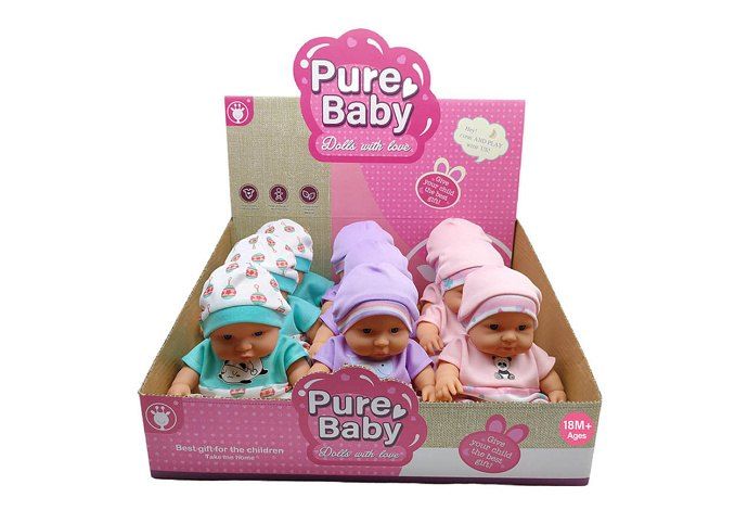 Miminko. Velikost 18 cm. Display box - 19 ks. 3 varianty - růžová, fialová, modrá.