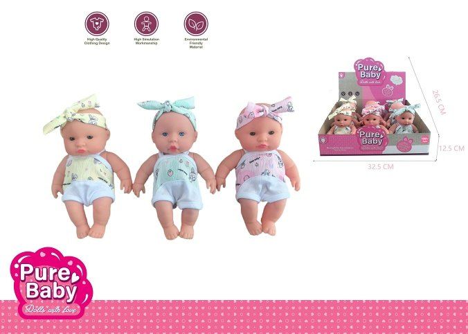 Miminko. Velikost 20 cm. 9 ks display box. 3 varianty - žlutá, modrá, růžová.