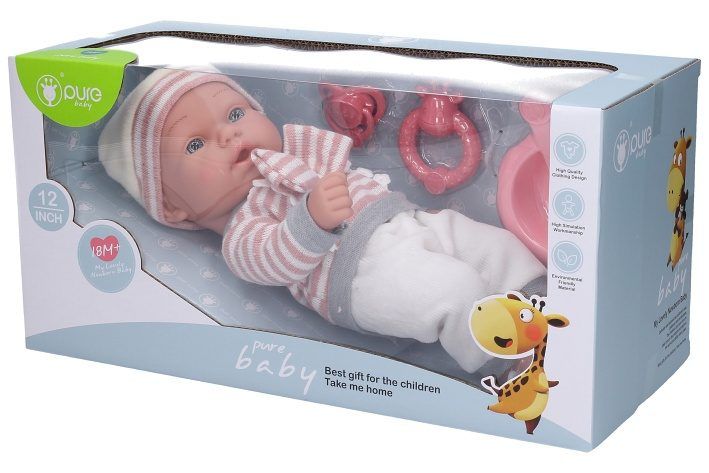 Miminko. Velikost 30cm. Příslušenství: dudlík, chrastítko, miska s příborem.