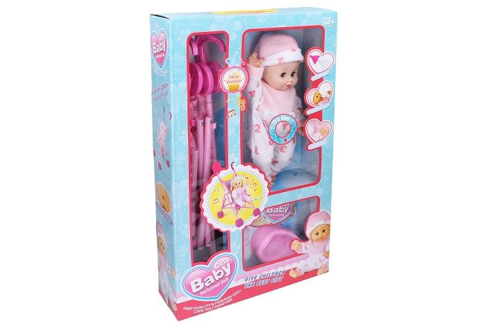 Součástí balení je miminko, kočárek, nočník, plenka a lahvička s mlékem.