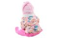 Panenka velká – miminko holka – s měkkým tělem o velikosti cca 50 x 27 x 13 cm. Oblečení lze sundat. Materiál plast+polyester+výplň. Konce končetin a hlava jsou z plastu. Baleno v sáčku. Věk 3+
