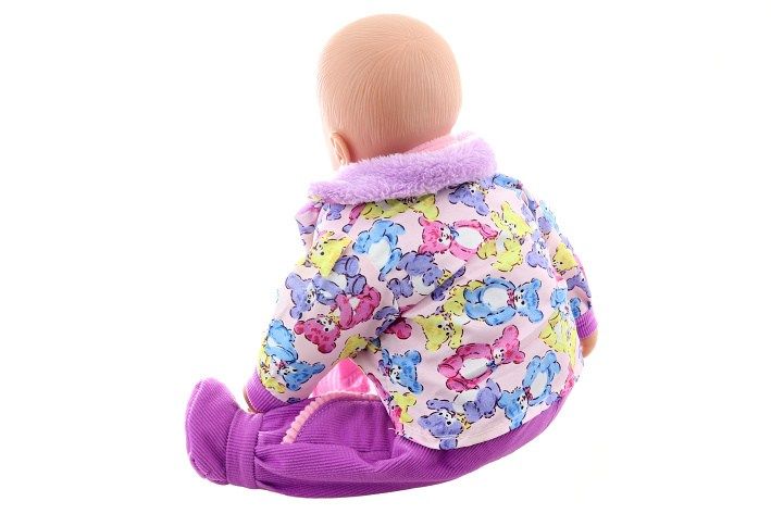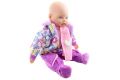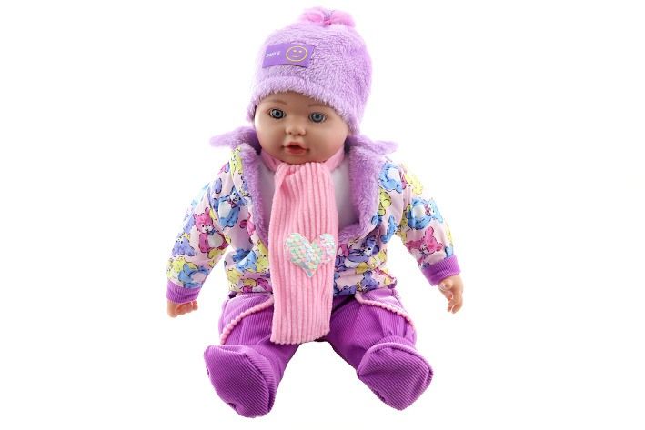 Panenka velká – miminko holka – s měkkým tělem o velikosti cca 50 x 33 x 13 cm. Oblečení lze sundat. Materiál plast+polyester+výplň. Konce končetin a hlava jsou z plastu. Baleno v sáčku. Věk 3+