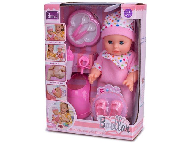 Miminko mrkací 30cm tvrdé tělo čurající s doplňky v krabičce
