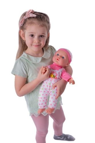 Panenka má měkké tělo a je se zvukem a světlem. Po stisknutí ručičky zčervenají tvářičky a začne kašlat. Přilož stetoskop na srdíčko a uslyšíš jeho tlukot. Po injekci začne miminko plakat. Dej miminku lahvičku do pusinky a poslouchej, jak pije. Uzdrav svoje miminko. Balení obsahuje stetoskop, injekční stříkačku, kukátko do uší, lahvičku, krabičku s nápisem VITAMÍNY a kartu pacienta. Panenka je velikosti 36 cm. Baterie 3x AG13 jsou součástí balení a slouží pouze pro předváděcí účely, doporučujeme baterie vyměnit za nové.