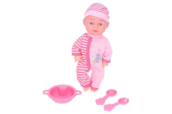 Miminko s doplňky. Velikost 26 cm. Součástí miminko, miska, 2 lžíce.