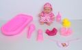 Rozkošné miminko v župánku je připraveno na večerní koupel plnou zábavy. O to se mu postará koupací kačenka, houbička a samozřejmě ty, jako maminka.
